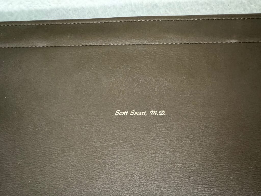 Grandpa Smart’s Leather Folio Important Paper Keeper – Embossed with “Scott Smart MD”