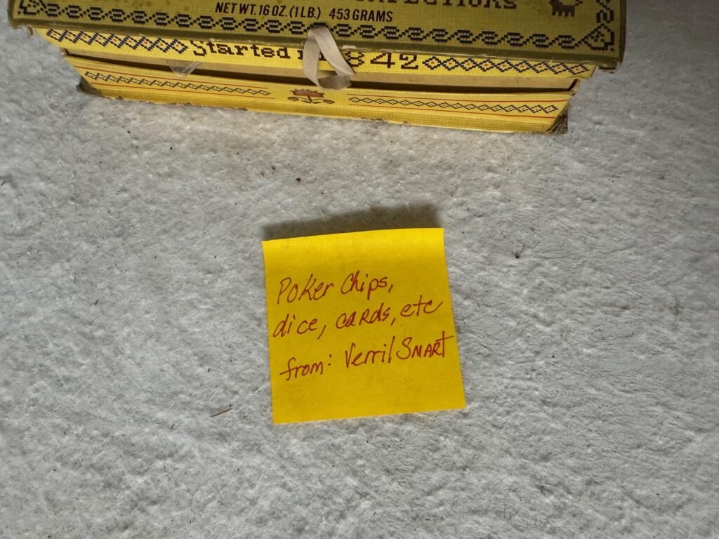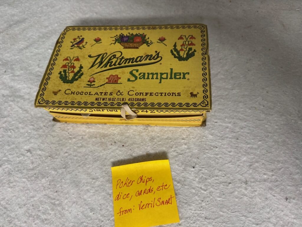 3 responses to “Verril Smart’s Box of Poker Chips, Dice, Etc”